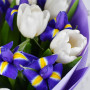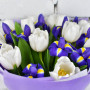 Букет из синих ирисов и белых тюльпанов в Петропавловске-Камчатском