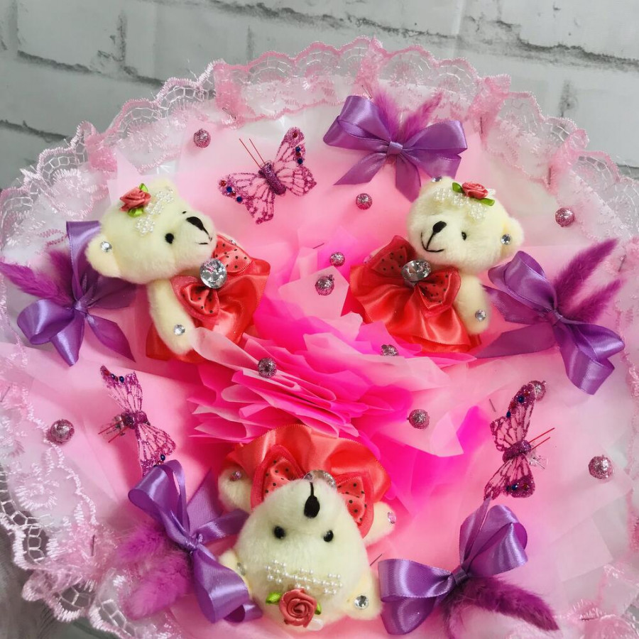 Букет из игрушек мишек и бабочек